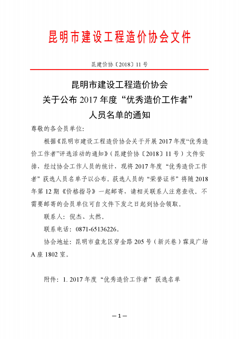 祝賀王紹鑫同志榮獲2017年度“優秀造價工作者”