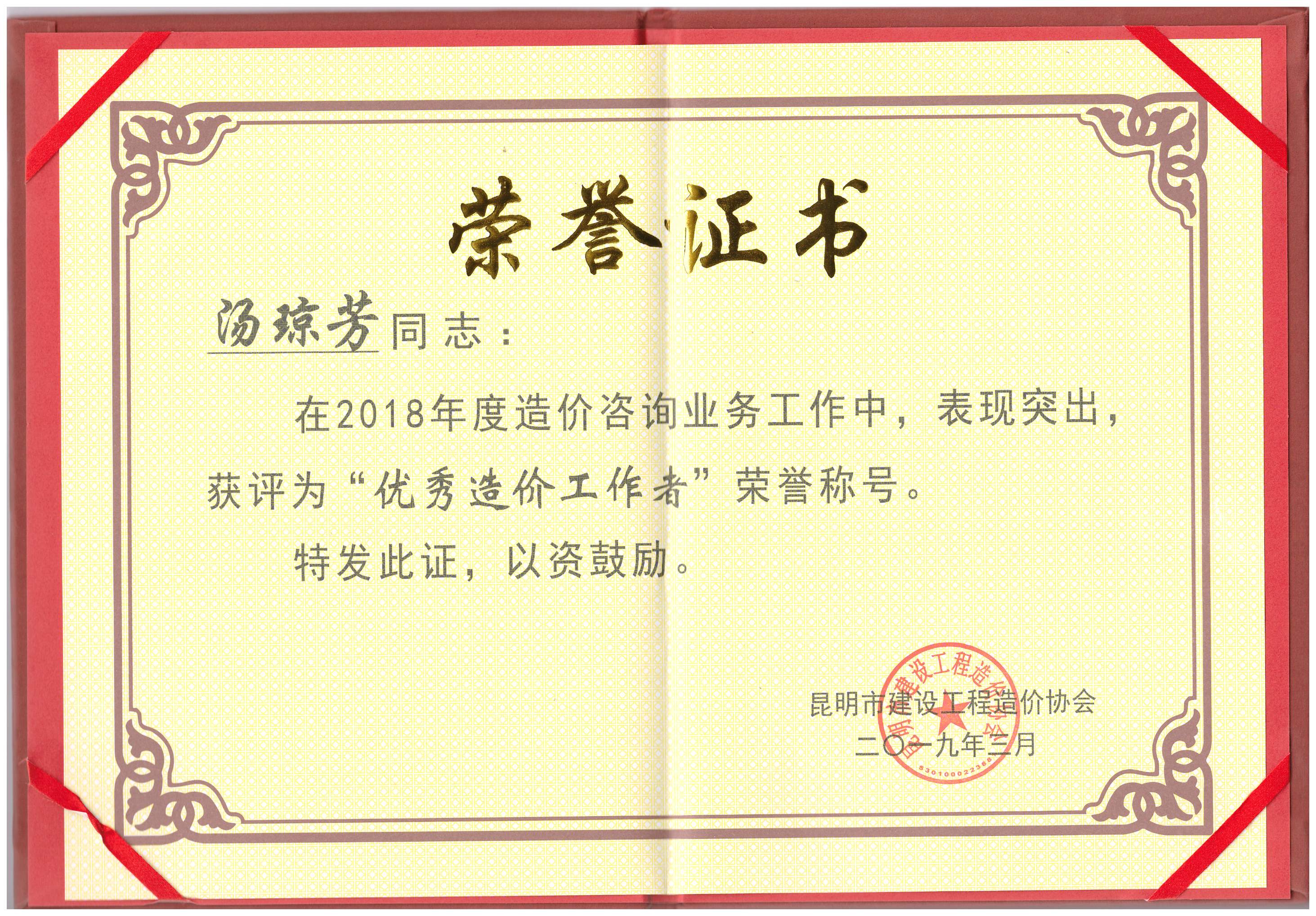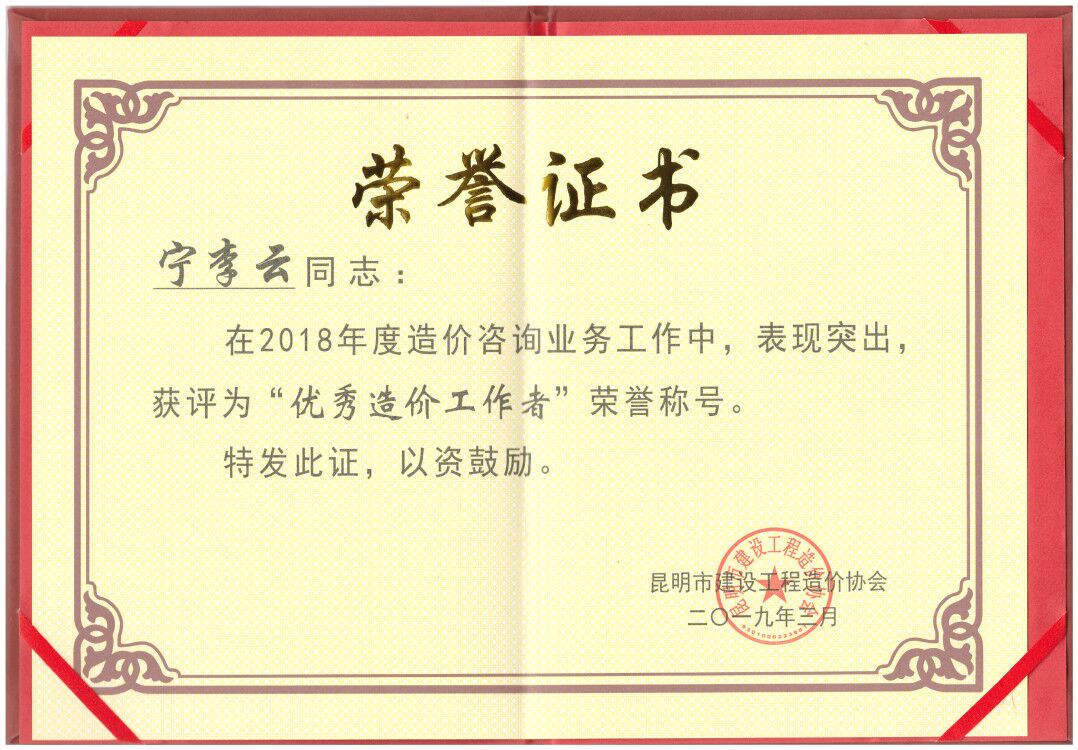 祝賀寧李云、湯瓊芳同志榮獲2018年度“優秀造價工作者”