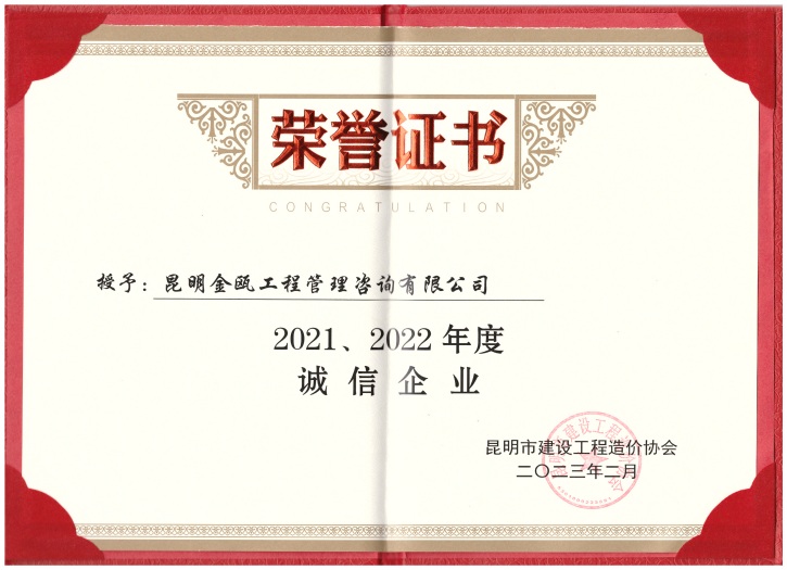 每一項的成績及榮譽(yù),不僅展現(xiàn)出公司愈加成熟的綜合管理水平,也體現(xiàn)出公司里每一份子對待工作愈加的自律與自信,是對自身工作方式的自律,是對自身工作成績的自信。從疫情放開的今年,公司也將繼續(xù)秉持高效、高專、高水平的綜合管理能力及凝聚力,讓昆明金甌的人才隊伍愈加壯大!