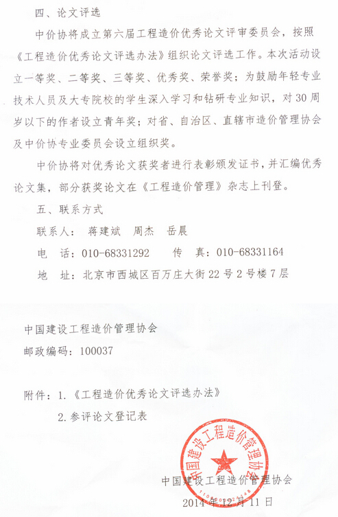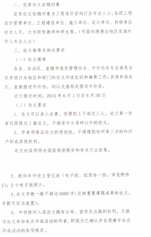 中國(guó)建設(shè)工程造價(jià)管理協(xié)會(huì)關(guān)于開展第六屆工程造價(jià)優(yōu)秀論文評(píng)選活動(dòng)的通知
