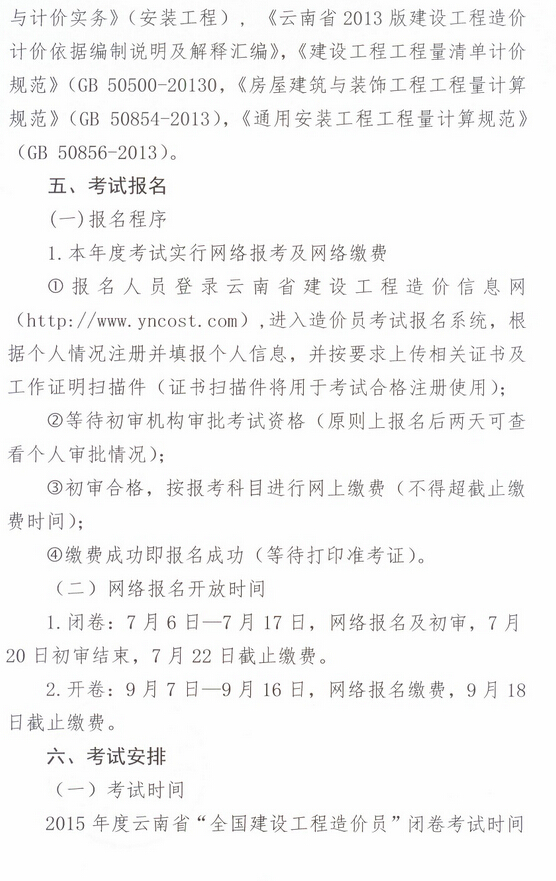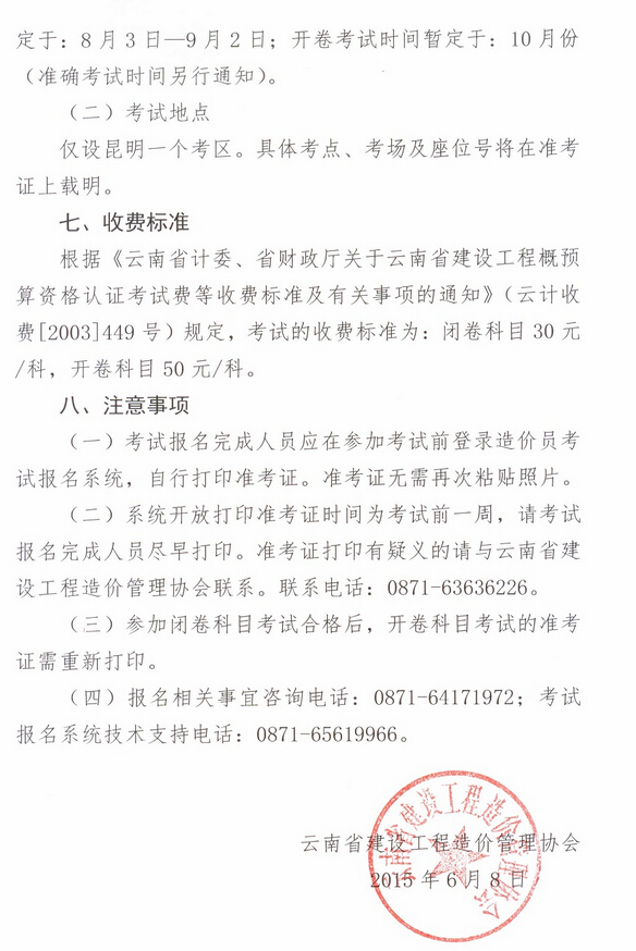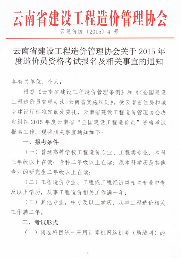 云南省建設工程造價管理協會關于2015年度造價員資格考試報名及相關事宜的通知