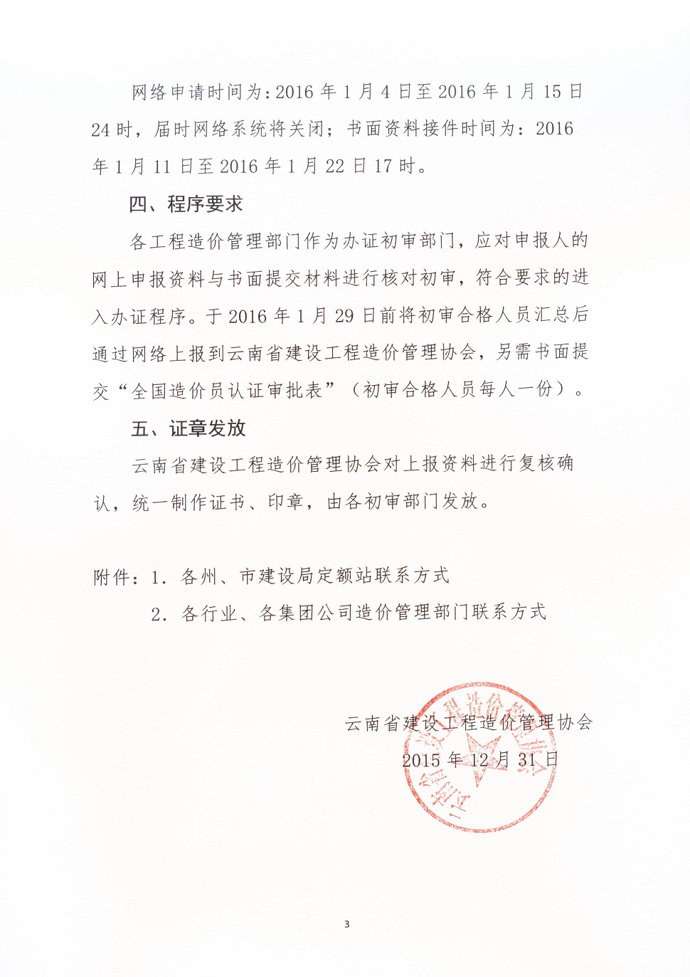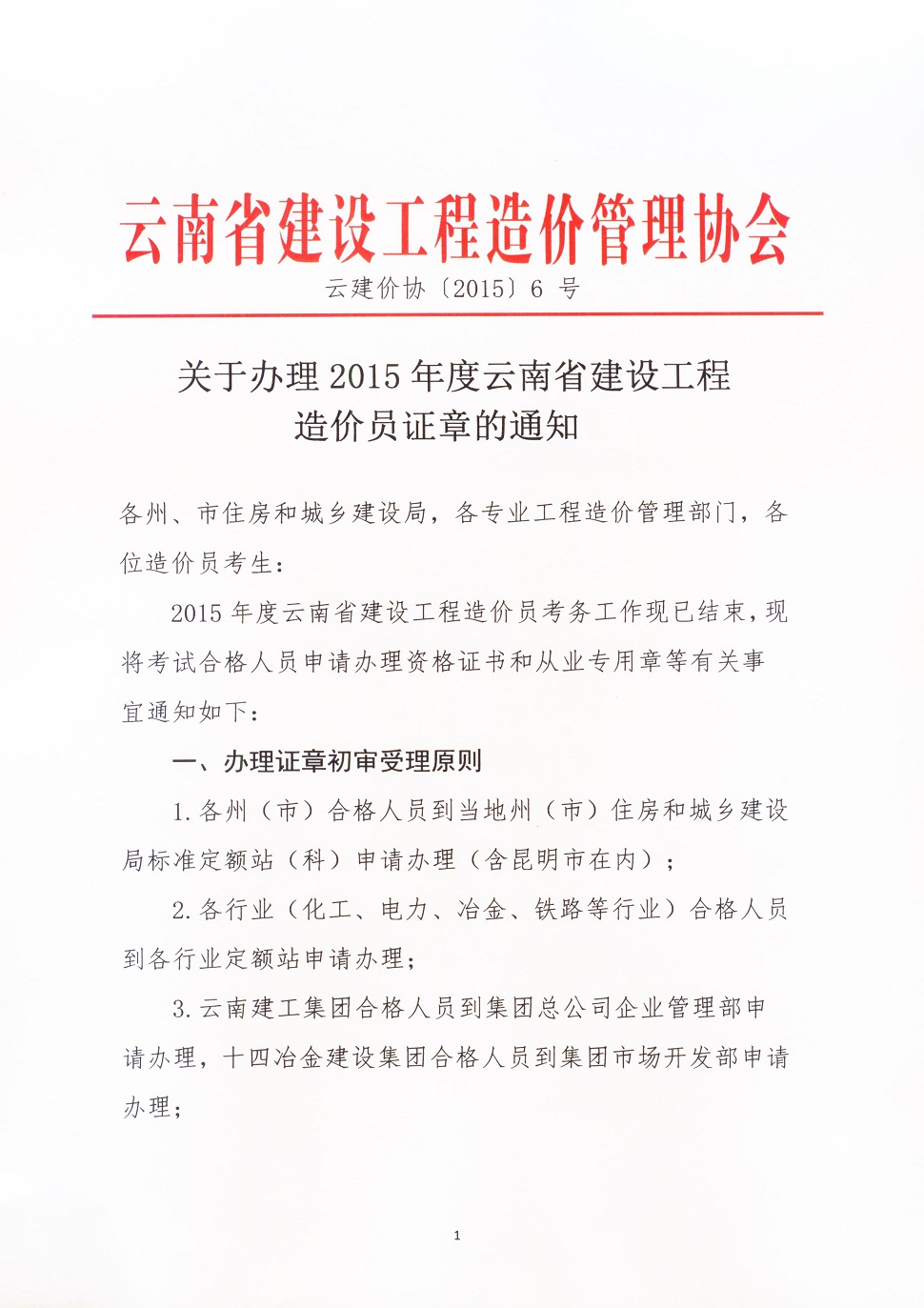 關于辦理2015年度云南省建設工程造價員證章的通知